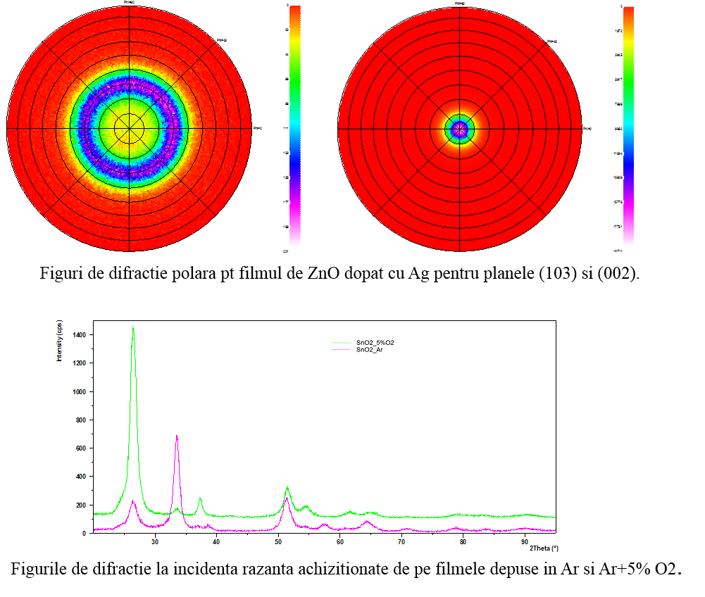 • Investigații și măsurări efectuate asupra filmelor subțiri obținute, pentru determinarea proprietăților morfologice, structurale, compoziționale, optice și electrice;