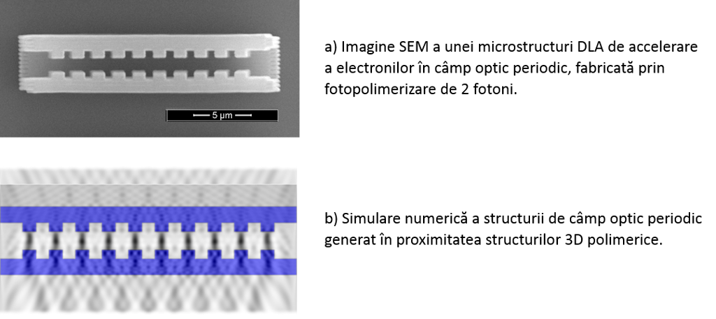 • Realizarea de structuri periodice prin litografie 3D pentru micro‐acceleratoare ‐ DLA;