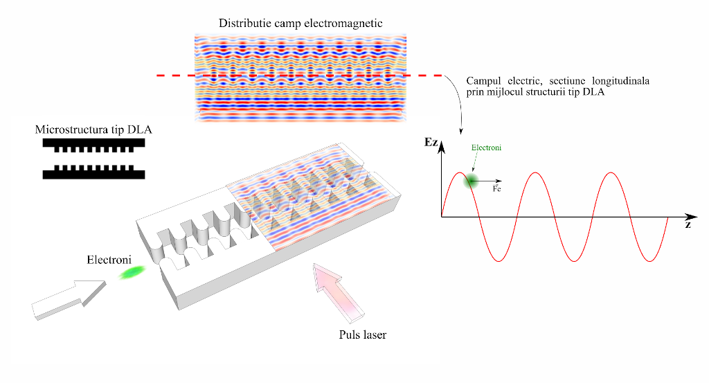 • Producere și diagnostică de fascicule de electroni micro‐colimate pentru injecție în microstructuri de accelerare cu laser;